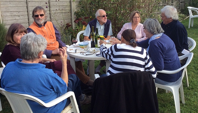2014: at “Marigold” on the sea-front. Hot, sunny weather; wine, cheese & charcuterie direct from a day-trip to France. Photos by Robin Patten